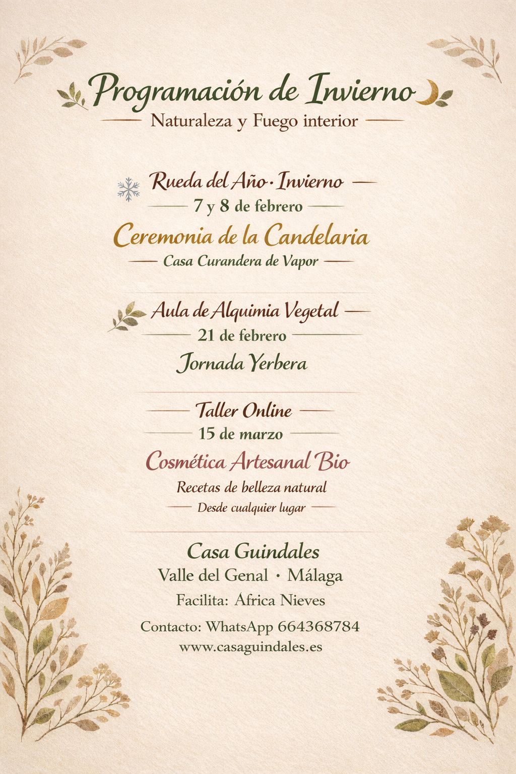 Un espacio de formación dedicado al conocimiento profundo de las plantas y su sabiduría ancestral. Cursos online y presenciales donde tradición y naturaleza se unen para aprender botánica viva, usos energéticos y alquimia vegetal aplicada al día a día.